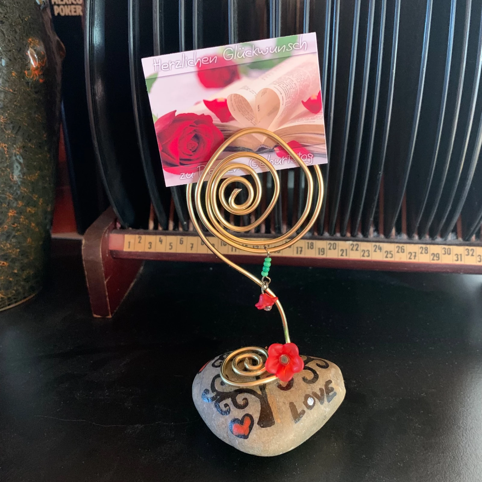 A tartó alján egy hangulatosan fesett kő biztosítja a stabilitást.
