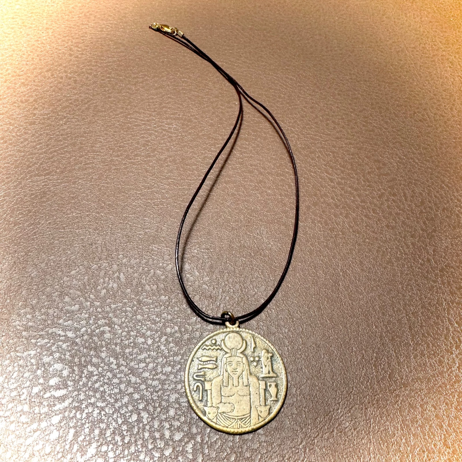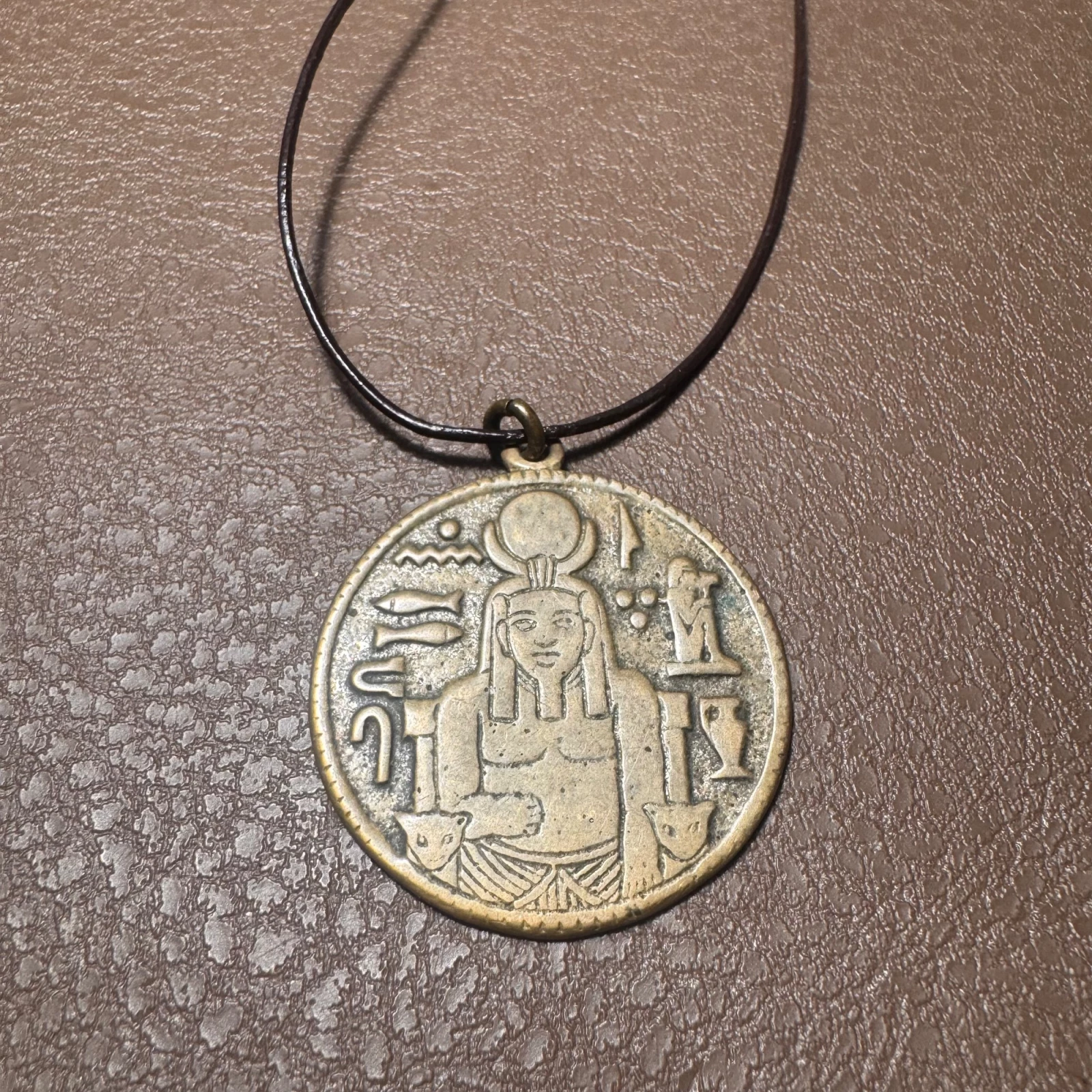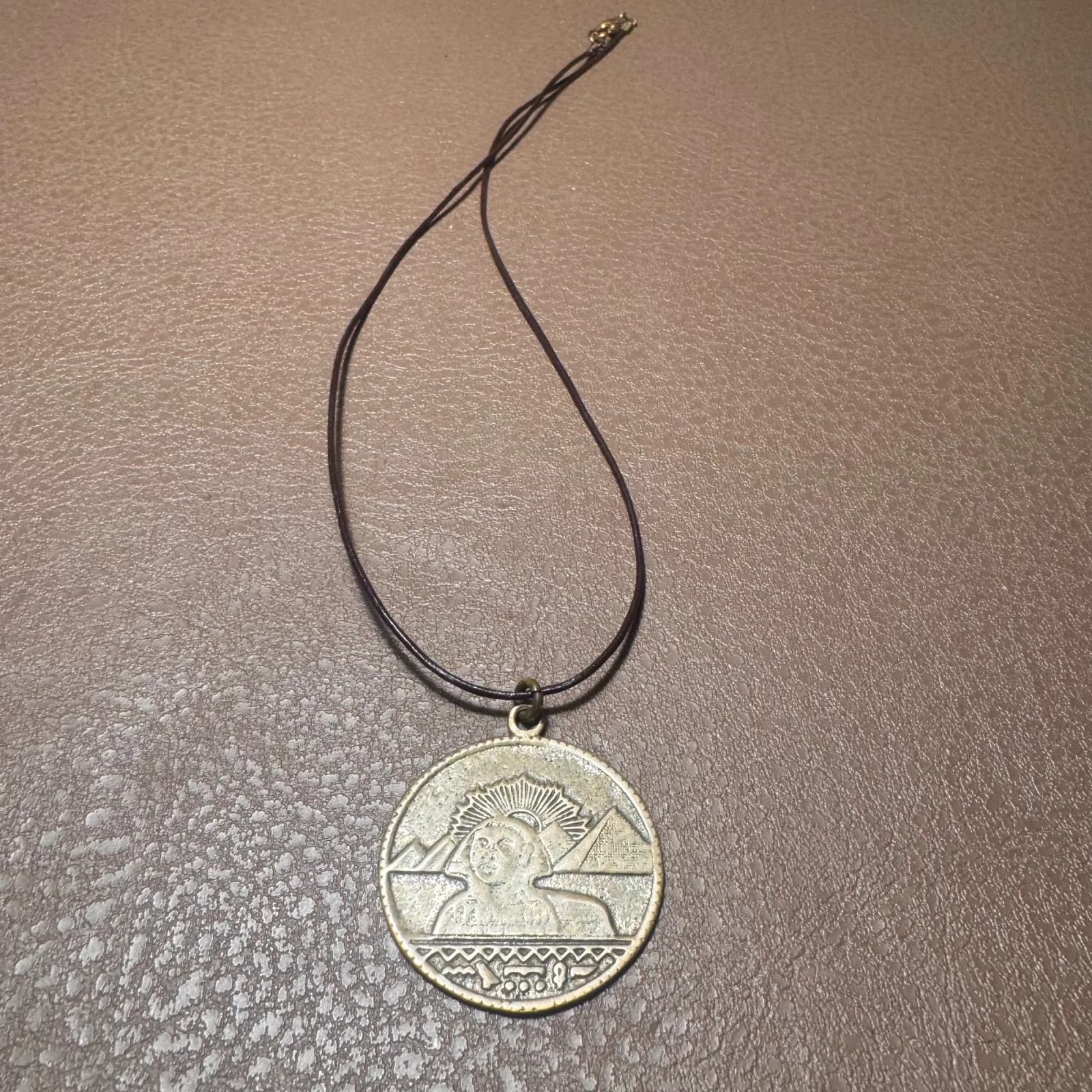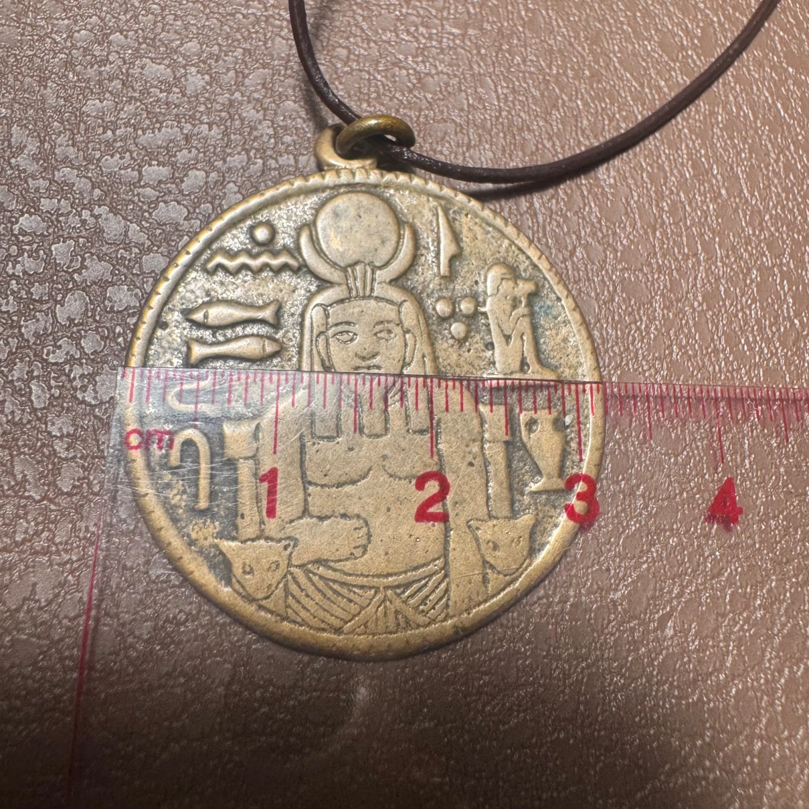 Egyiptomi réz medálos férfi vagy uniszex nyaklánc bőr szíjon, férfi ékszer