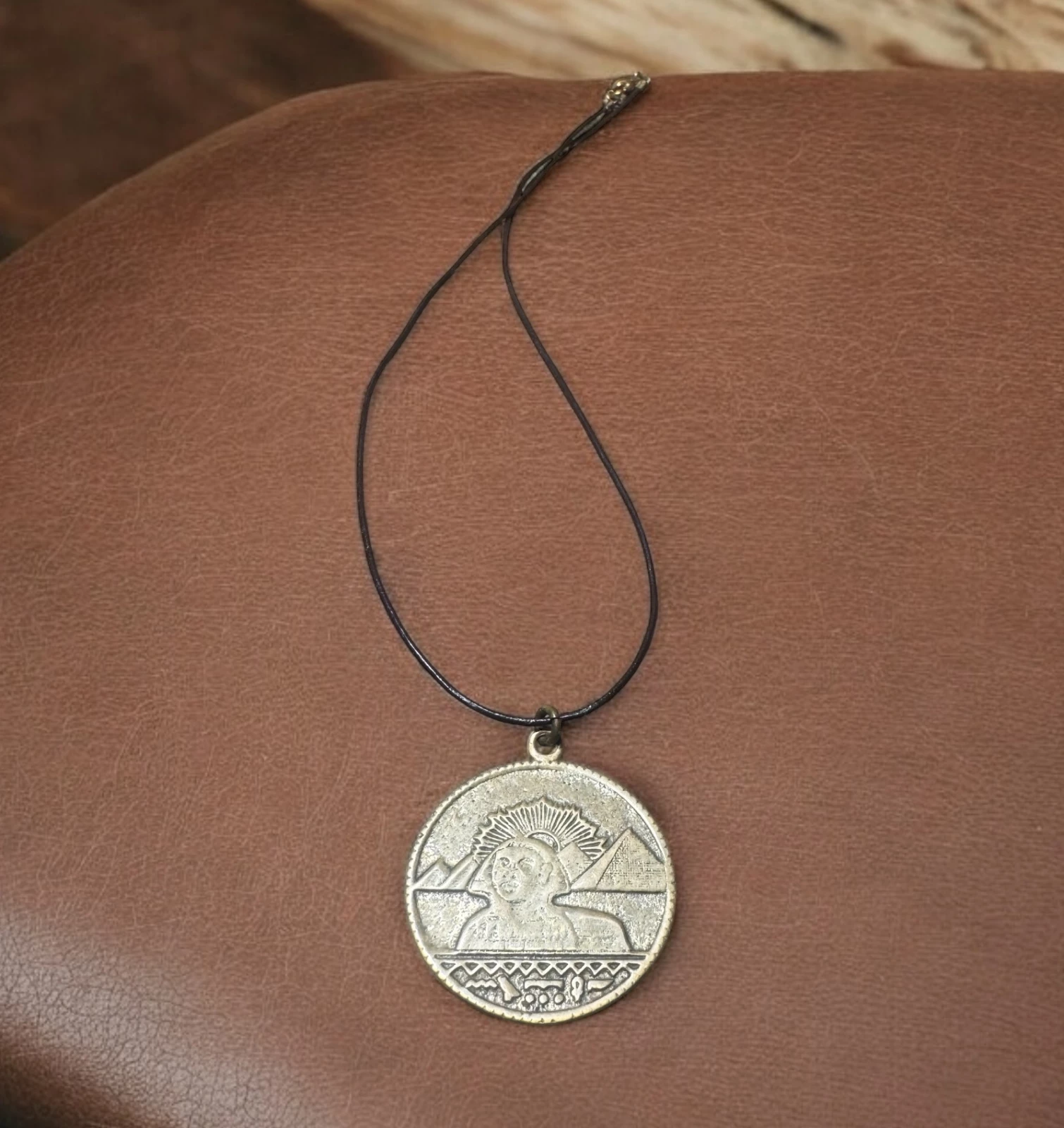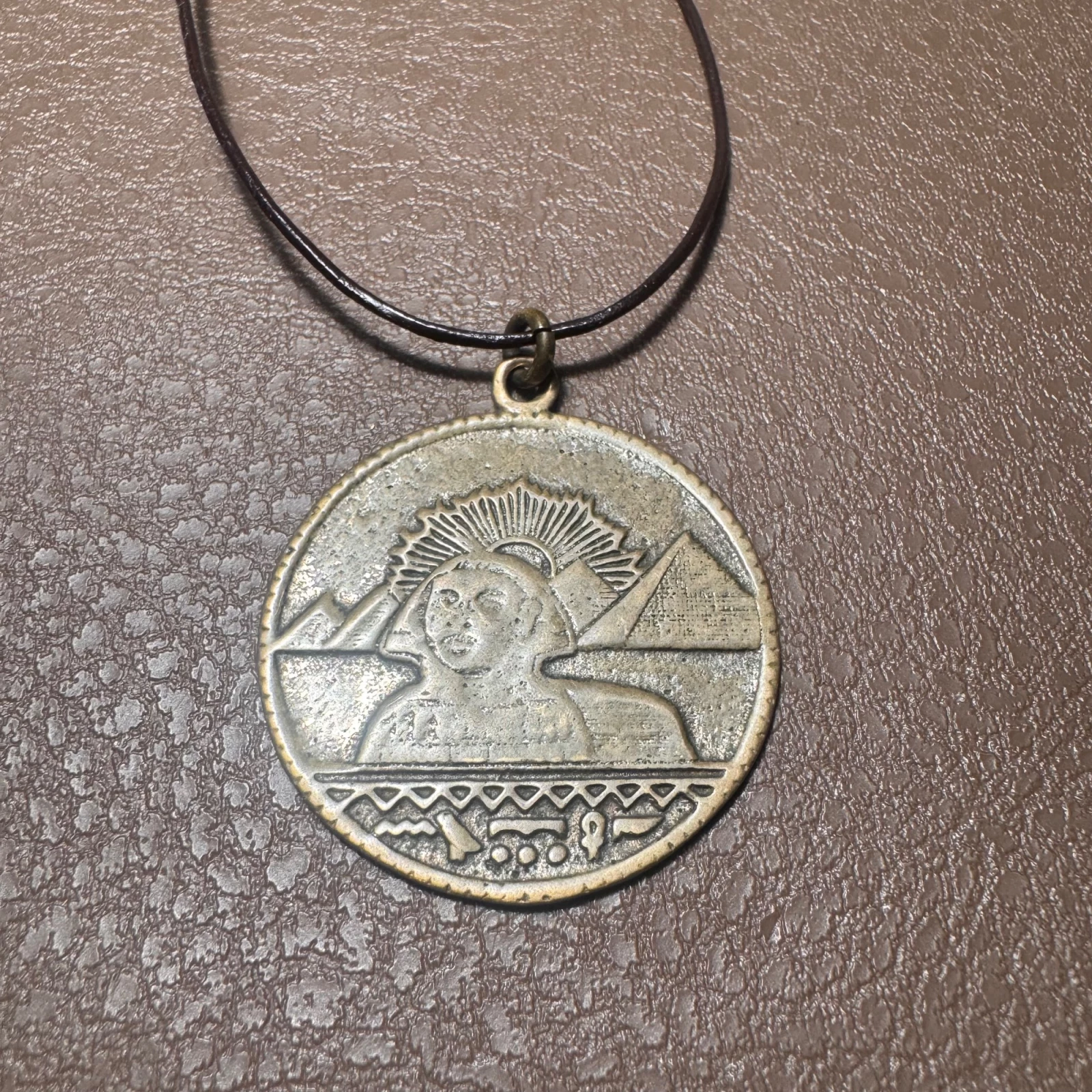 Egyiptomi réz medálos férfi vagy uniszex nyaklánc bőr szíjon, férfi ékszer Egyiptom Fáraó Piramis